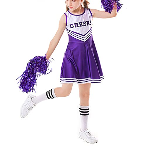 Diudiul Costume da Festa di Halloween per Ragazze Vestito da Cheerleader Uniforme da Cheerleader per Bambini (Purple,150)