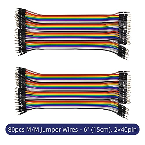 DIUSTOU 80pcs Breadboard Jumper Wire Cavetti Ponticello Fili Cavi a Nastro Maschio/Femmina Multicolore Dupont Cable 2x40 pezzi (Maschio a Maschio (M-M), 6 inch (15cm))