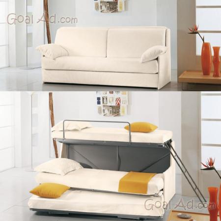 Questo modello e' realizzato con un meccanismo il cui schienale diventa letto a castello, ed ha una rete superiore estraibile con scorrimento su binari. Con rete a doghe e materasso espanso spessore 11 cm. di serie. Puo' essere fornito con una seconda rete estraibile su ruote o con un cassettone estraibile su ruote.