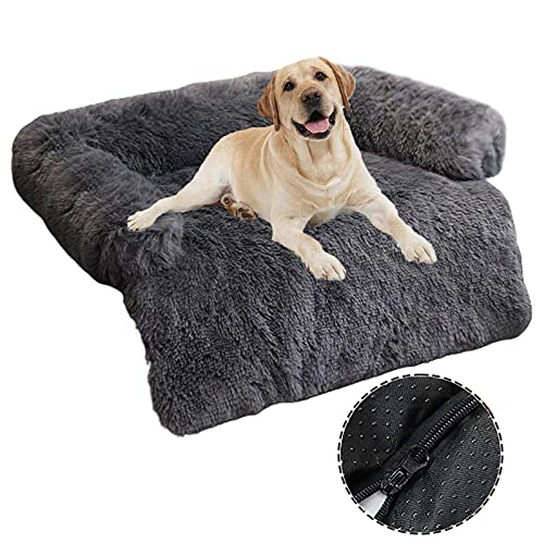 Divano letto ortopedico in morbido peluche per cani, calmante per cani di taglia grande, media, sacco a pelo ortopedico sollievo e sonno migliorato, antiscivolo, staccabile e lavabile, grigio scuro, S