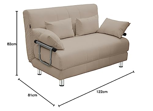 Divano Letto A 2 Posti Completamente Sfoderabile Lavabile Divanoletto Con Meccanismo A Clic Clac Apertura A Libro Con Cuscini E Braccioli In Acciaio Ideale Per Soggiorno Salotto Studio Colore Beige