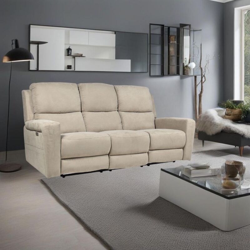 Divano 3 posti recliner elettrici tessuto tortora Claus 211x77x103H Il divano 3 posti recliner Claus tessuto tortora è il connubio di comfort e raffinatezza per il tuo living. Rivestito in tessuto di altissima qualità, questo divano si distingue per la sua eleganza senza tempo e il suo design ricercato. Un complemento d'arredo di grande fascino e valore, dotato di meccanismo elettrico silenzioso e preciso. Trovare la posizione giusta per il tuo comfort risulterà semplice ed intuitiva. Caratteristiche principali: 3 posti recliner elettrici: regolazione elettrica della posizione dei recliner mediante pulsanti posizionati ai lati dei braccioli, per un comfort personalizzato e un relax impareggiabile. Rivestimento in tessuto colore tortora: la morbidezza e la traspirabilità del tessuto offrono un comfort eccezionale e una sensazione di lusso. Ingresso USB: ricarica i tuoi dispositivi elettronici comodamente mentre ti rilassi sul divano, grazie alla pratica porta USB integrata. Dimensioni