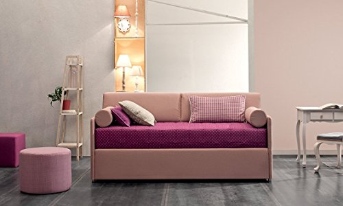 Divano con rete secondo letto estraibile completo di materassi ortopedici, cuscinatura e rulli. tessuto a scelta sfoderabile (tessuto nero, materassi standard 80x190)