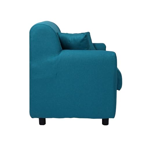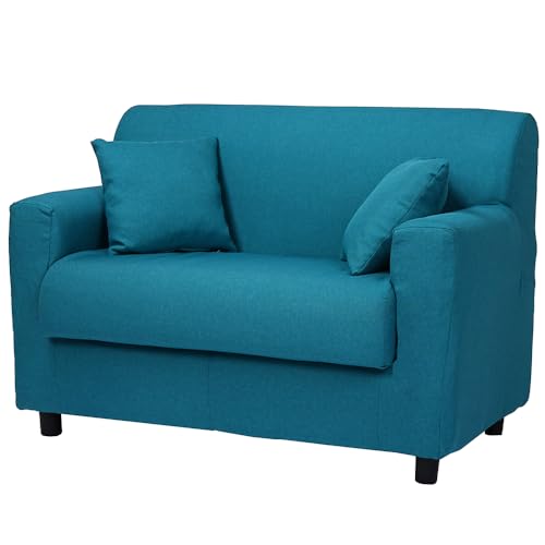 Divano sfoderabile 2 posti in tessuto imbottito con braccioli larghezza 124 cm (Turchese)