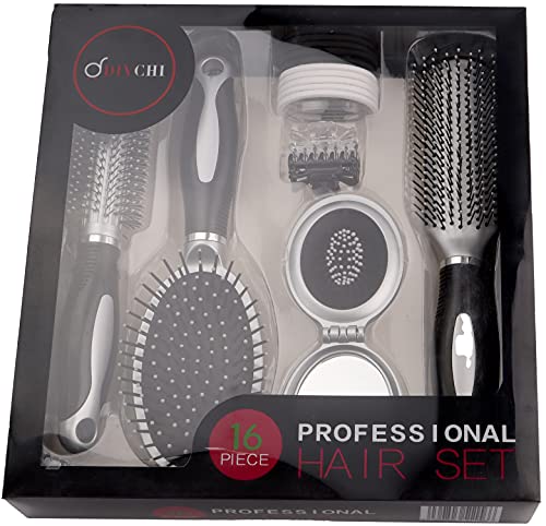 DIVCHI Kit professionale per la cura dei capelli da 16 pezzi, set regalo con spazzola arricciacapelli, spazzola per lo styling a farfalla, clip per pennello compatto e fasce per capelli
