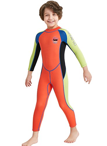 DIVE&SAIL One Piece Muta in Neoprene da Sub 2.5mm Wetsuit Manica Lunga da Bambino per Surf Diving Snorkeling Nuotare Actività Subacquea - Arancio - Taglia M