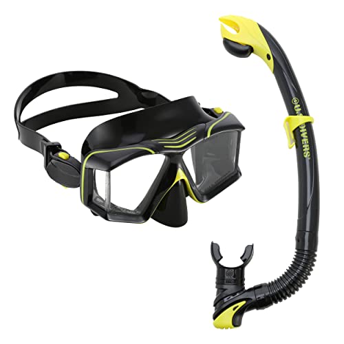 US.Divers Combo SIDEVIEW | Kit per immersioni per adulti, maschera e boccaglio con visione a 180°, protezione UV, lenti antiappannamento, boccaglio con spurgo, visione, uomo e donna, silicone