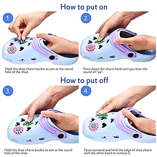 FACILE DA USARE: ogni ciondolo per scarpe ha un pulsante sulla parte posteriore, che ti consente di fissare comodamente il ciondolo per scarpe nelle scarpe, non cadrà facilmente dopo essere stato attaccato al foro della scarpa.