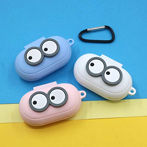 Divertente custodia protettiva compatibile con Samsung Galaxy Buds e Galaxy Buds Plus (2020), in morbido silicone TPU con moschettone in 3D, con occhi grandi (nero)