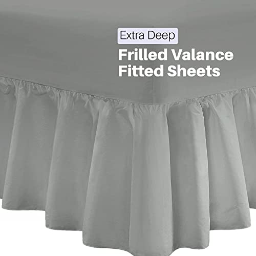 Divine Textiles Lenzuola mantovana, con balze extra profonde, Policotone Cotone, Grey, Singolo