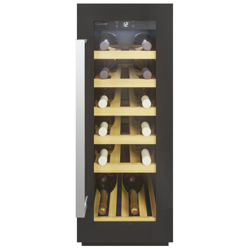 Candy DiVino CCVB 30/1. Posizionamento dell'apparecchio: Da incasso, Colore struttura: Nero, Colore interno: Nero. Capacità bottiglie: 20 bottiglia/bottiglie, Intervallo temperatura (zona 1): 5 - 18 °C, Classe climatica: Starfish. Tipo di controllo: Pulsanti, Tipo di lampada: LED, Applicazioni per il controllo supportate: hOn. Classe efficienza energetica: F, Consumo energetico annuo: 98 kWh, Scala di efficienza energetica: Da A a G. Larghezza: 295 mm, Profondità: 562 mm, Altezza: 813 mm