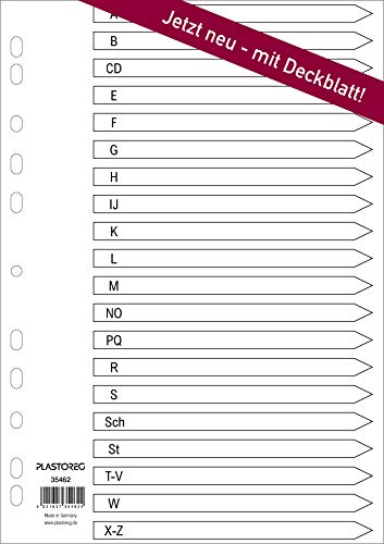 Set di 5 divisori in PP DIN A4 con lettere A-Z, completamente coprenti e pratica copertina in carta resistente per scrivere. Fogli divisori per organizzare raccoglitori in ufficio.
