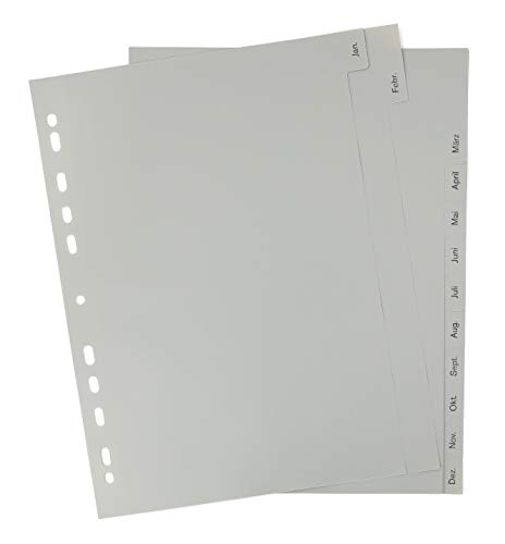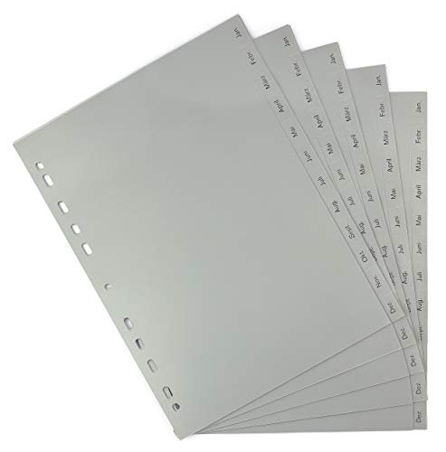 Set di 5 divisori in polipropilene per DIN A4 con mesi di Jan-Dez + pratico copertina in carta resistente per scrivere. Fogli divisori per organizzare raccoglitori in ufficio.