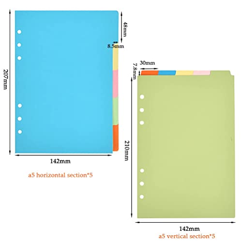 10 set divisori A5, 5 divisori a tema verticali A5 + 2 divisori orizzontali A5, divisori per raccoglitori ad anelli colorati a 6 fori A5, divisori per fogli mobili per blocco note A5