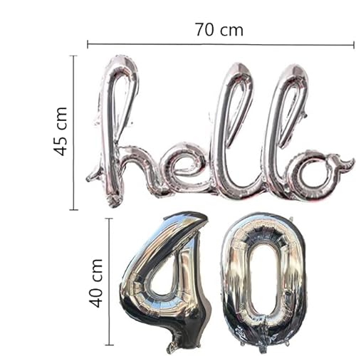DIWULI Ciao 40 Balloon, Argento, Striscioni Numeri Palloncino Lettera Mongolfiera, il Numero di Palloncini, Fogli di Palloncini ID No. Anni, un Foglio di Palloncini, Festa 40 ° Compleanno