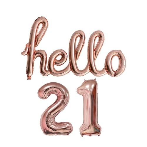 DIWULI Hello 21 Palloncino, Oro Rosa, Palloncini Numero Numeri Anni Pallone in Foil, Palloncino Lettera, Gonfiabile Grande Ragazzo Ragazza Bambino Bambina, 21° Compleanno Matrimonio Festa Decorazione