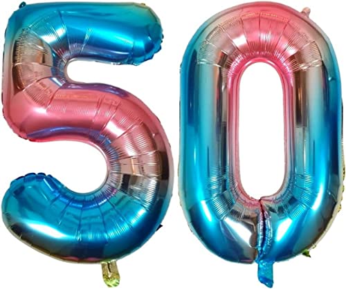 DIWULI Palloncini 50 Anni Compleanno Blu Arcobaleno XL - Palloncini Compleanno 50 Anni Palloncini Numero 50 Palloncini Numeri Gonfiabili Palloncino Festa Decorazione Decorazioni Pallone Ragazza