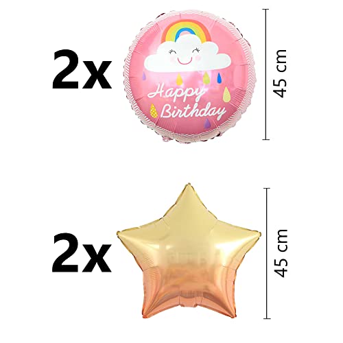 DOLCE SET BABY GIRL DA 5 PEZZI: 1x palloncino XL Baby Bottle It's a Girl (circa 80 x 40 cm), 2x palloncino in foil Happy Birthday (circa 45 cm), 2x palloncino a stella. (circa 45 cm)