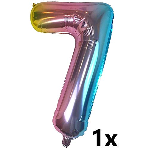 DIWULI Set di Palloncini, Numero XL Palloncino Rosa Gradient, Numero 7, Happy Birthday Farfalla Palloncini Foil 7° Compleanno Bambini Ragazza Ragazzo Motto Festa Decorazione Palloncini Foil Numero