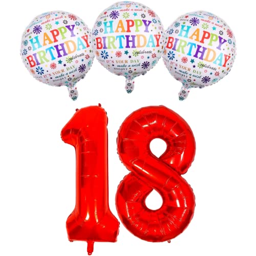 DIWULI Set di Palloncini, Palloncino Numero XXL Rosso, Numero 18, Happy Birthday Palloncini in Foil Bianchi Colorati 18° Compleanno Bambini Ragazzo Ragazza, Motto Festa Decorazione Festa