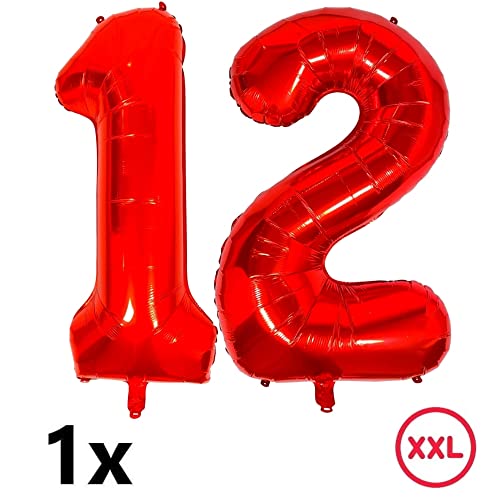 DIWULI Set di Palloncini, Palloncino Numero XXL Rosso, Numero 12, Happy Birthday Palloncini in Foil Bianchi Colorati 12° Compleanno Bambini Ragazzo Ragazza, Motto Festa Decorazione Festa