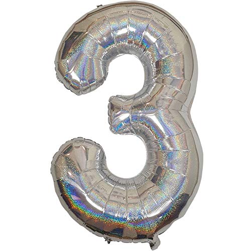DIWULI Palloncino Numero 3 Argento XXL - Palloncini Compleanno 3 Anni, Palloncino 3 Anni Palloncini Numeri Gonfiabili Elio Grande Festa Decorazione Decorazioni Pallone Ragazzo Ragazza Bambino Bambina