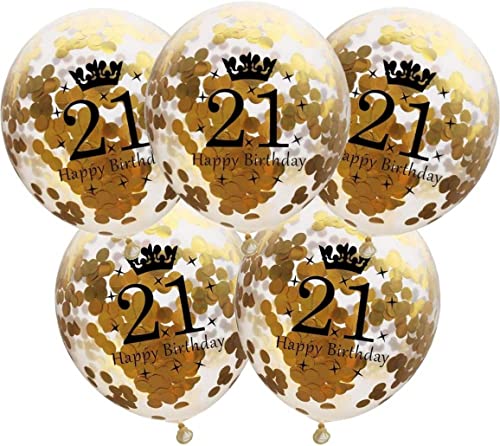 DIWULI 5 Pezzi Palloncini di Compleanno, Numero 21, Happy Birthday, Buon Compleanno, Lattice Palloncino Oro, Pallone Numeri Anni, 21° Compleanno, Matrimonio, Festa, Nozze, Anniversario, Decorazione