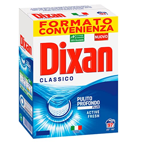Dixan Classico Pulito Profondo Plus Active Fresh Detersivo in Polvere Smacchiante per Lavatrice Formato 5,82kg - 97 Lavaggi