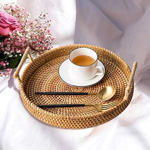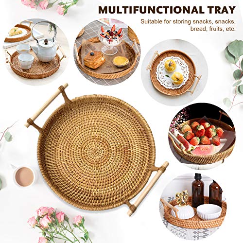 DIYARTS Cestino di Frutta Intrecciato Rotondo in Vimini Fatto A Mano con Doppio Manico Vassoio da Portata Multiuso Naturale per Pane