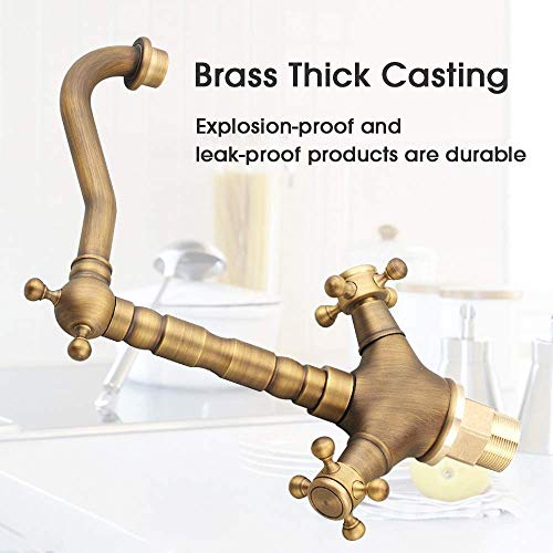 Rubinetto girevole a 360 ° in rame antico Rubinetto doppio in ottone Rubinetto per lavello Cucina spazzolata Bagno Rubinetto per acqua calda e fredda vintage retrò