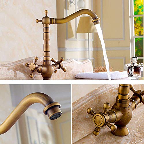 Rubinetto girevole a 360 ° in rame antico Rubinetto doppio per lavello da cucina in ottone Rubinetto per lavabo da bagno Rubinetto per acqua calda e fredda delicato vintage