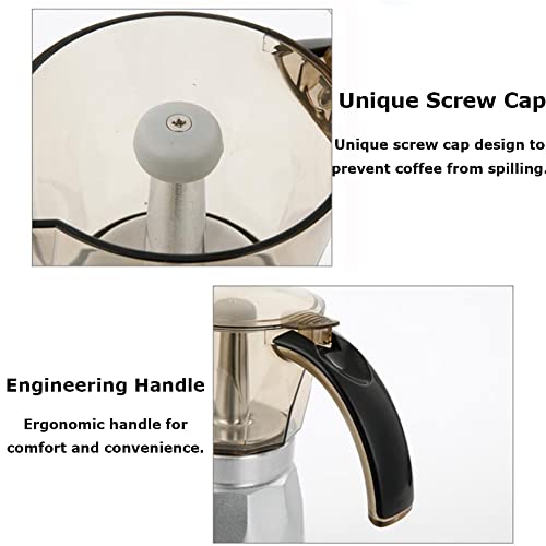 【300 ML / 6 TAZZE】 Con un riscaldamento rapido e uniforme accompagnato da un forte aroma, la macchina per caffè espresso può farti 6 tazze di caffè espresso in un attimo e rimarrai immediatamente colpito dal suo gusto e aroma ricchi.