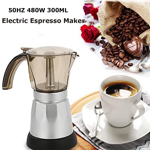 Diyeeni 480W Espresso Maker elettrico, caffettiera moka teiera 300ml 6 tazze, caffettiera con pratica maniglia, design moderno, facile da pulire, per viaggiare a casa
