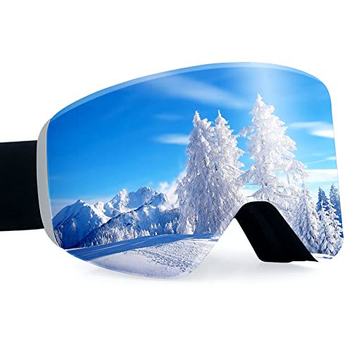 DIZOKIZO Ski Goggles Frameless Magnetic Interchangeable Cylindrical Lens for Skiing Snowboard Anti-fog and 100% UV Protection Triple Breathable Foams Embossed Strap Universally Fit for Women Men