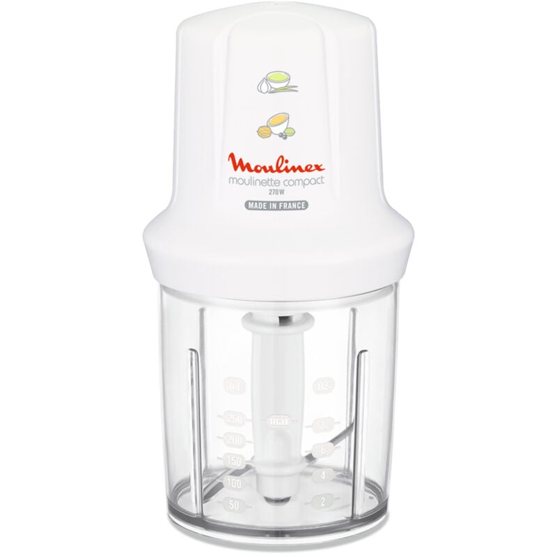 3 In 1: Trita, Taglia E Mescola Qualsiasi Ingrediente 3 in 1: trita, taglia e mescola carne cotta, aglio, cipolle, erbe, salse e purè di frutta... Facile Da Usare sistema 1, 2, 3 per attivare l'unità motore Capacità Utile 250 Ml Trita, taglia e mescola fino a 250 ml con la capacità utile del recipiente tritatutto.. Facile Da Riporre Facile da usare con cavo di alimentazione pratico da riporre Riparabile Al Giusto Prezzo - 15 Anni Progettato per una facile riparazione Consegna dei ricambi rapida ed economica per 15 anni 6200 Riparatori autorizzati in tutto il mondo Moulinette compact, taglia, trita e mescola qualsiasi ingrediente. Moulinex DJ3001 Moulinette Compact, 270 W, 43 Decibel, plastica, Bianco. Capacità ciotola: 0,25 L, Capacità della vaschetta: 0,2 kg, Paese di origine: Francia. Colore del prodotto: Bianco, Materiale ciotola: Plastica, Materiale lama: Acciaio inossidabile. Potenza: 270 W. Larghezza: 12 mm, Profondità: 12 mm, Altezza: 20 mm Prestazione Capacità ciotola 0,25 L