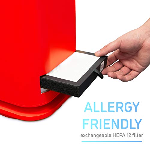 Djive Flowmate Tower One, ventilatore a torre, silenzioso con app e controllo Alexa, purificatore d'aria con filtro HEPA 12, circa 105 cm di altezza, con telecomando, oscillazione 80°, 35 W, rosso