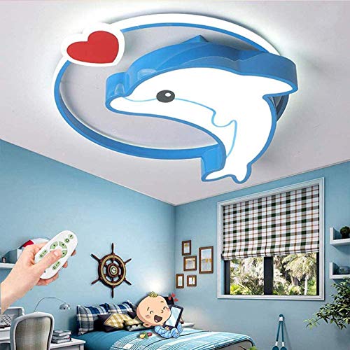 DJPP Lampadario, Lampadario Satellitare, Plafoniera a Led Dimmerabile a Forma Di Delfino Blu Cartone Animato con Paralume in Acrilico con Telecomando Lampadario per Camera da Letto per Ragazze Dei Ra