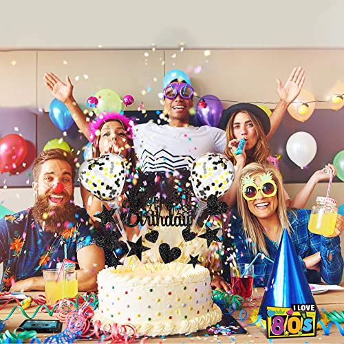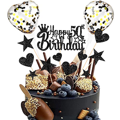 DKBT Happy Birthday 50 Anni Decorazioni Torta Compleanno 13 Pezzi Topper Torta Buon Compleanno con Glitter per Feste di Compleanno(Nero)