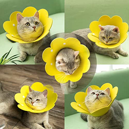 Comodo e mobile: il morbido materiale leggero del collare di recupero permette ai tuoi animali domestici di muoversi liberamente e sentirsi a proprio agio quando lo indossa, non farà sentire stanchi i tuoi animali domestici e non bloccherà la visione dell'animale domestico. Bella forma di girasole li farà sembrare carino.