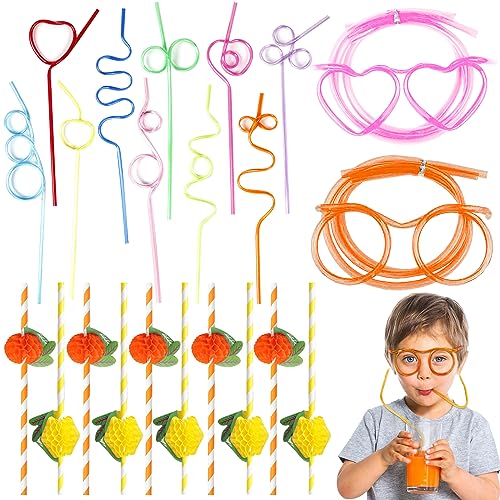 【Pacchetto Compreso】10 pezzi cannucce ricci di varie forme e colori,10 pezzi cannucce di carta 3d,2 pezzi sciocche divertenti colorati di paglia.