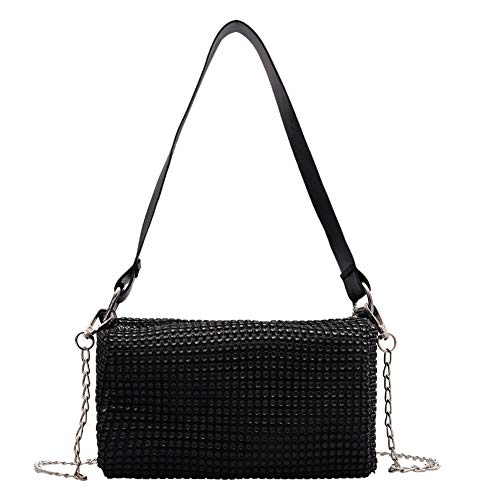 DKIIL NOIYB Pochette da sera con strass, borse con diamanti per donne, mini pochette con diamanti argentati, borsa lucida per cene e feste di nozze, borsa scintillante argento, 01-nero, 51.5 EU