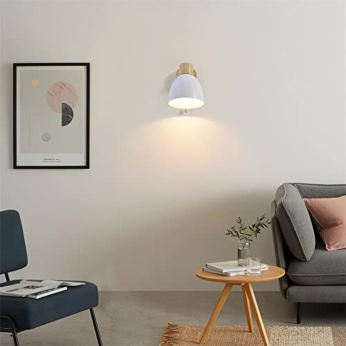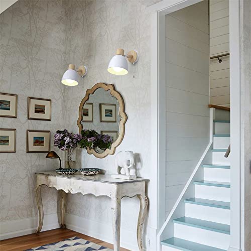 DKNHS Applique da Parete Interno con Interruttore Lampada da Parete in Legno E27 Vintage Retro Industriale Lampada a Muro per Camera da Letto, Soggiorno, Scale, Corridoio (Bianco)