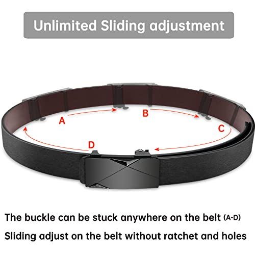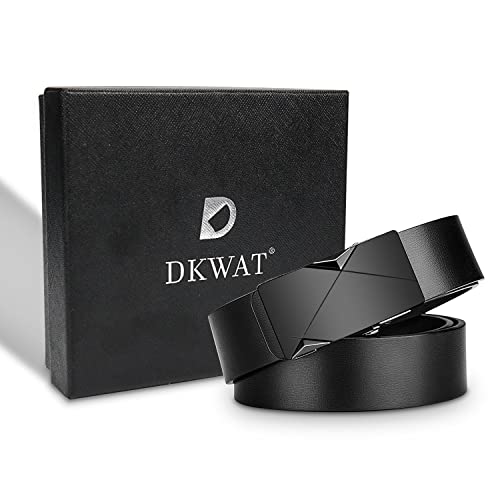 DKWAT Cintura Uomo Pelle con Fibbia Automatica, Casual Formali Cinture Uomo 3,5cm * 115-130cm, Cinture in Pelle Nero Confezione Regalo Uomo