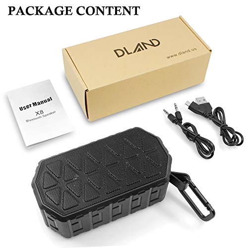 DLAND senza fili Bluetooth Resistente all'acqua Speaker- IPX6 impermeabile, Buit-in MIC, 3.5 millimetri Audio Jack, 6W Potenza di uscita, prova della polvere, antiurto altoparlante per iPhone, iPad, Samsung originale ultra portatile per Interni Esterni (nero)