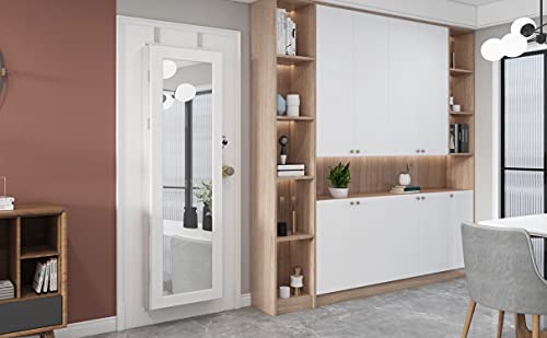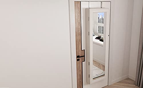 DlandHome Portagioie da Armadio con Specchio, Armadietto Specchiera Organizer Sospeso Montato su Porta per Gioiell con 6 Luci a LED