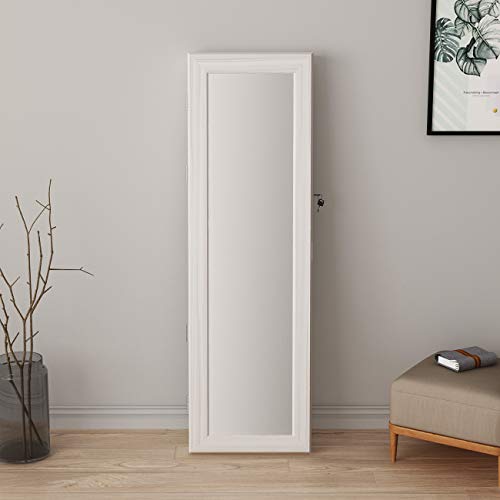 【Materiale di alta qualità】: specchio in vetro antideflagrante con rivestimento interno in velluto nero. Realizzato in robusto pannello MDF ambientale e superficie in PVC con venature del legno massello. L'armadio per gioielli ha buone prestazioni di resistenza all'umidità.
