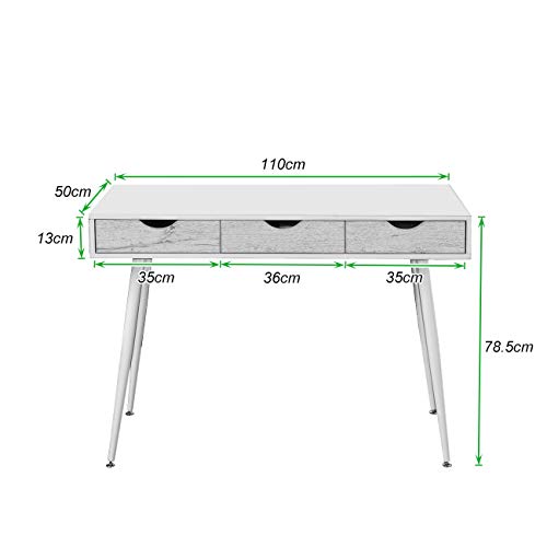 DlandHome Scrivania Ufficio con 3 Cassetti 110x50cm Scrivania PC Computer Tavolo da Studio Casa in Legno Tavolo con Scaffale,DEU-GCBG1016