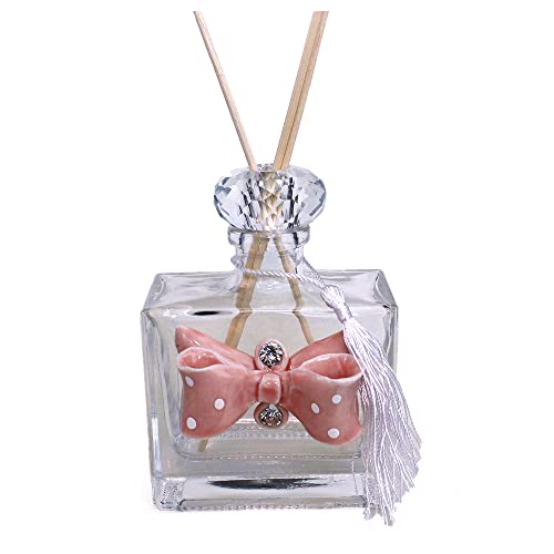 DLM34170 Profumatore in Cristallo con Fiocco Pois Rosa Colorato in Porcellana per Ambienti Profumo Battesimo Comunione Matrimonio bomboniera