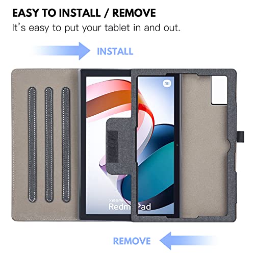 DLveer Custodia per Xiaomi Redmi Pad Tablet 10.61", Supporto e Tasca Multi-Angolo in Pelle PU, Cover con Auto Svegliati/Sonno Compatibile con Xiaomi L83 Redmi Pad Tablet 10.61 Pollici, Denim Nero