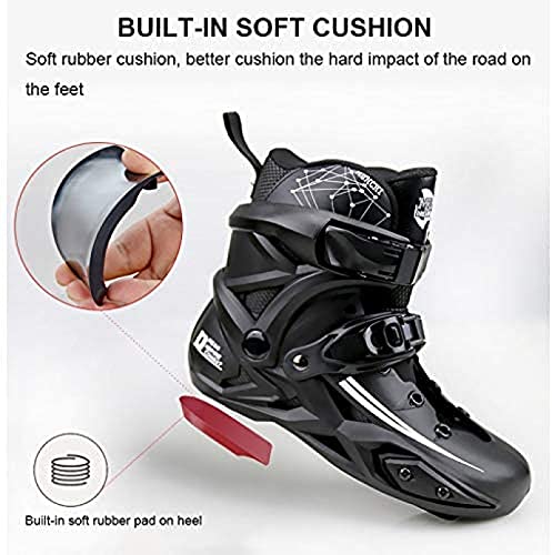 Soletta in gomma ammortizzatore: pattini a rotelle professionali. Il cuscinetto in gomma morbida integrato nel tallone riduce l'impatto duro sul tallone durante l'allenamento ed è assolutamente confortevole.